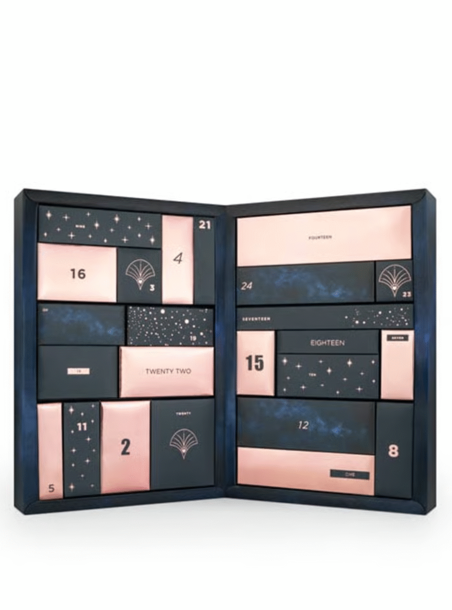 Kalenderen inkluderer produkter som passer til både han, henne og par, noe som gjør den til en perfekt gave å dele med en partner eller for deg selv.