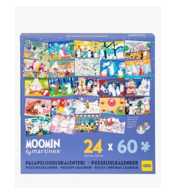 Mummitrollets puslespilljulekalender gir deg 24 små puslespill med koselige Mummimotiver – en ny overraskelse hver dag i adventstiden.