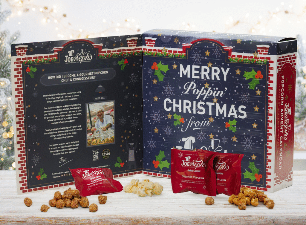 Popcorn Julekalender fra Joe & Seph’s gjør desember ekstra spennende med 24 poser gourmetpopcorn i unike smaker.